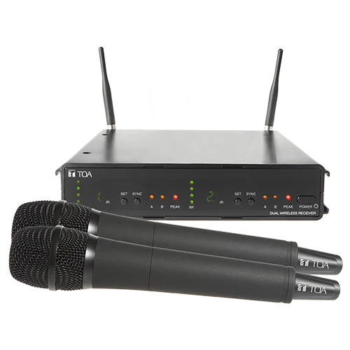 The TOA WS-422 is a professional-grade dual-channel wireless microphone system, designed for reliable voice communication in environments such as mosques, lecture halls, schools, and event venues. As a plug-and-play set, it includes two handheld wireless microphones and a compact receiver, making installation and operation straightforward and efficient.